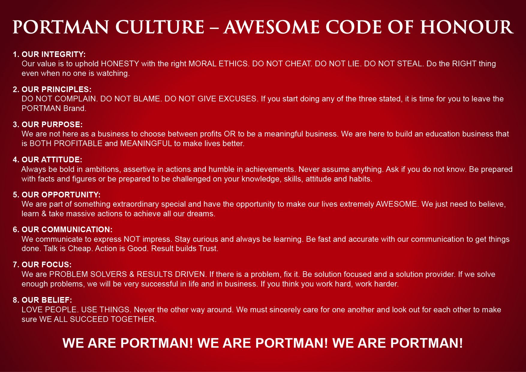 2012 was a historic year for PORTMAN College when the college took a new dimension to position itself strongly as a higher education institution committed to provide broad, balanced, relevant, coherent, progressive and differentiated curriculum and teaching and learning approaches to all our students thus ensuring that our students are holistically prepared to face the challenges in the industries. PORTMAN College has since held strong to its’ core values and sincere dedication to ensure that the highest standard of education is provided to all our students. Our consistency, sincerity and dedication are among the driving factors of our success. Today, PORTMAN College stands proud to be a well-respected specialist in Business Education, committed to the mission and core purpose of moving `Beyond Education : Making a Difference By Making Lives Better’.