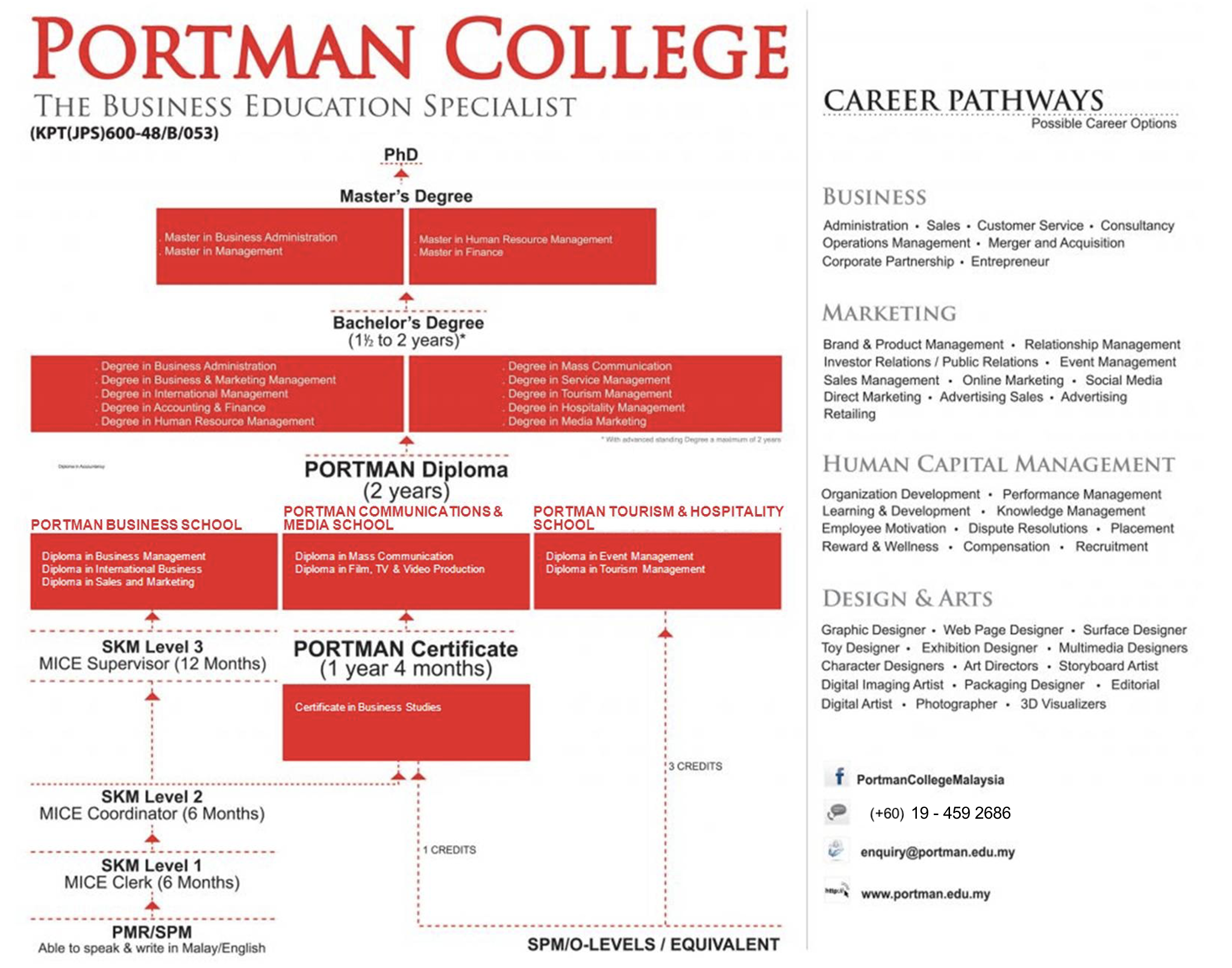 This is a map of where a PORTMAN College education can take you, what career options are available to you upon under-taking our courses, and what climbing the ladder to getting that PhD in Business would look